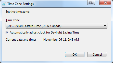 - You can change the date and time by clicking the "Change date and time.." button to change the time zone and/or enable DST click the "Change time zone.." button. As you can see from the 2nd image below there is a check box to adjust the clock for DST.